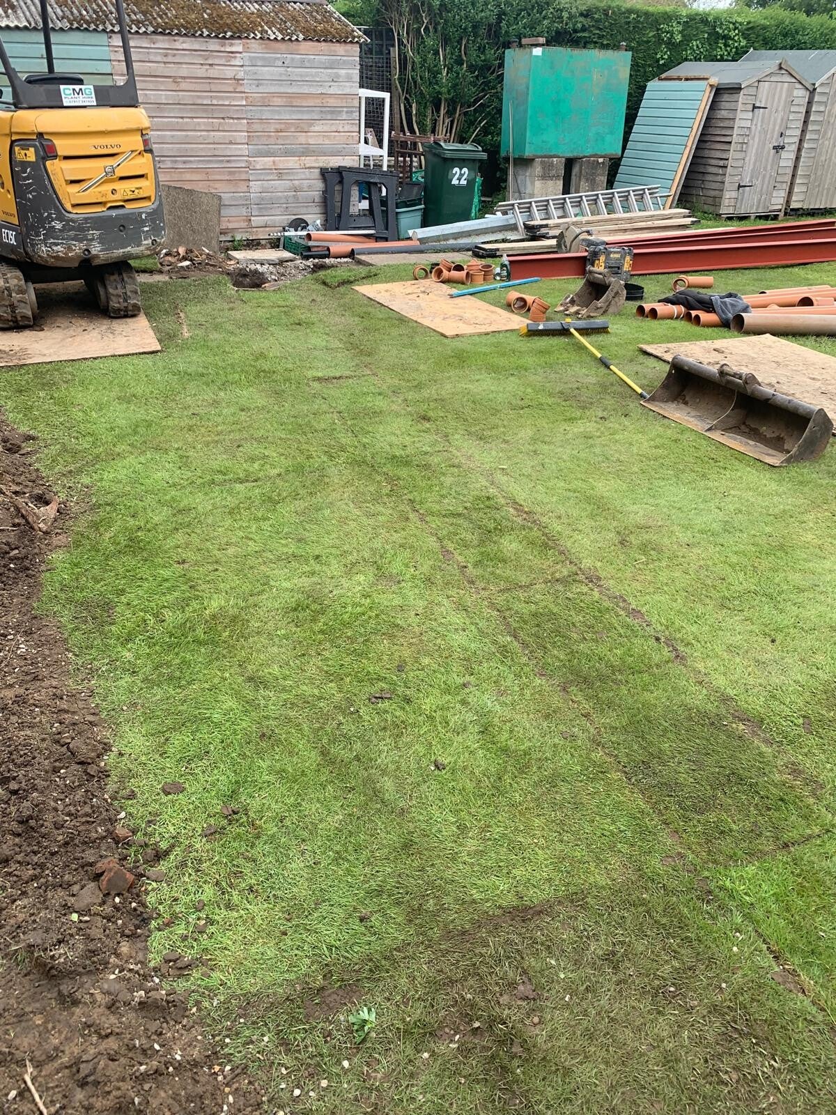 The customer on this project needed a reinforced slab for a rear extension and some new drainage taken through the garden. We did our best to keep and return the lawn to its original condition.